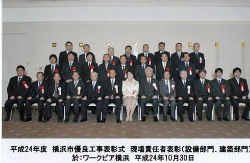 H24年10月30日 ワークピア横浜にて平成24年度横浜市優良工事表彰式が行われ、施工会社表彰、現場責任者表彰それぞれの部門において表彰をいただきました。
